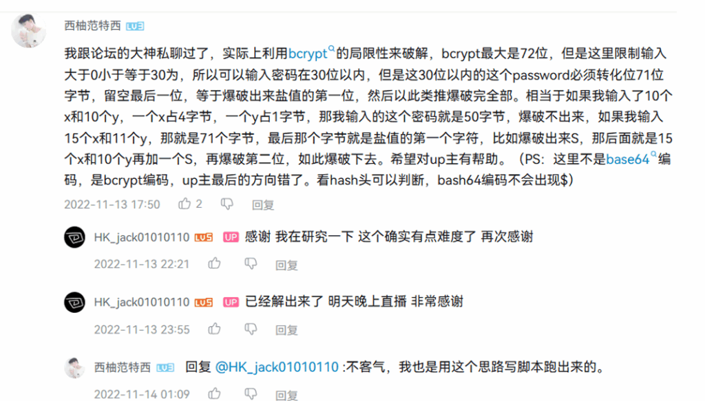 这个 bcrypt 实际上有72字节的限制,⽆论你输⼊多少,它和 salt 组合之后只会处理前⾯ 72 字